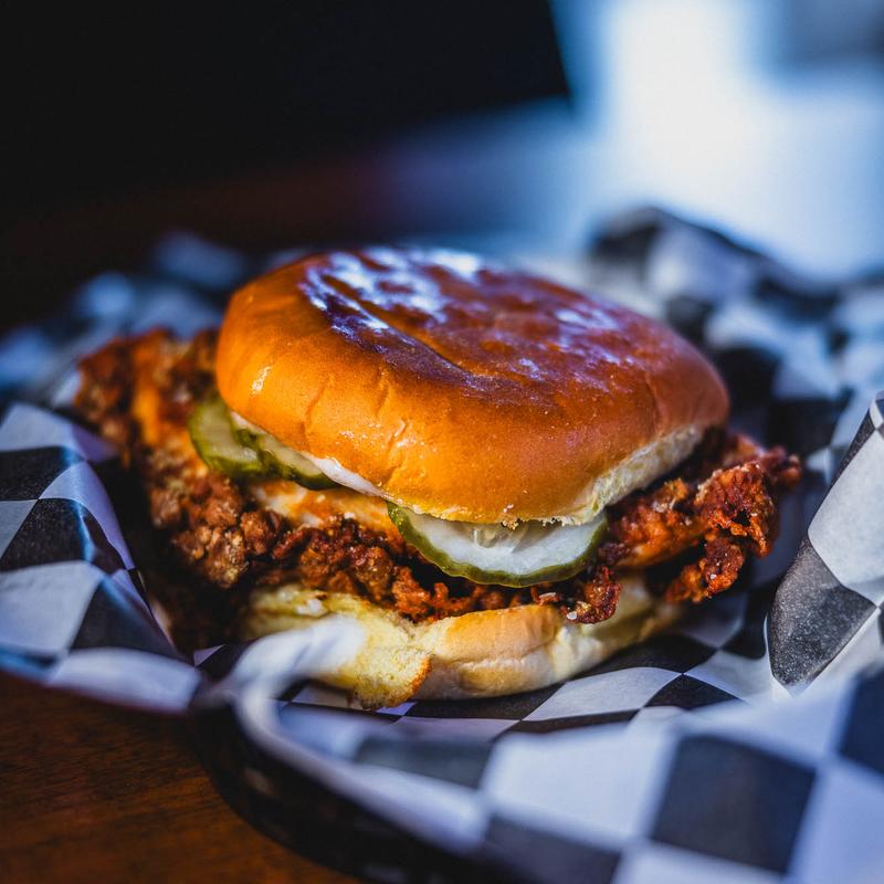 Spicy hot fried chicken breast, mayo. pickles martins potato bun.