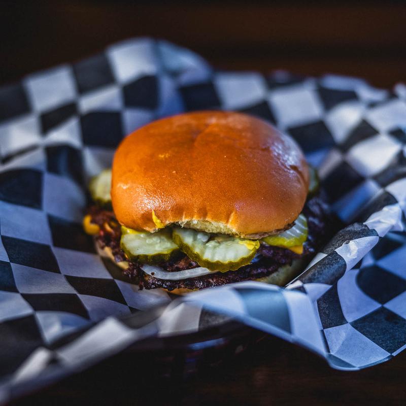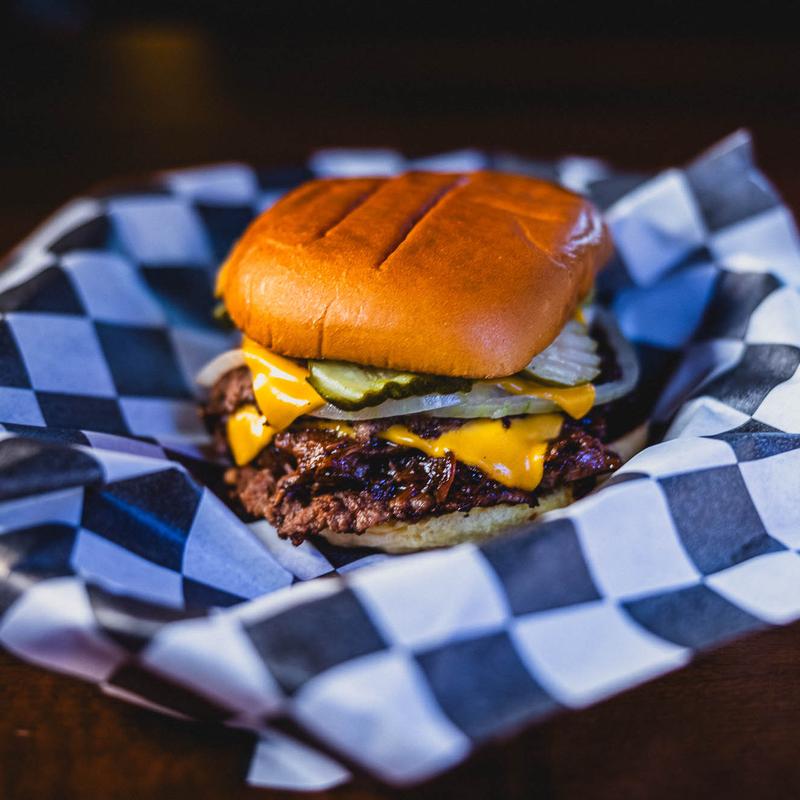 Two smashed patties, American cheese, pickles, and onions, topped with BBQ-tossed short rib | Make it a Beyond Patty +$1.00